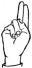 На ћирилици написано ИВА РАДОЈА састоји се из 9 слова [?]. Исписано ћириличном једноручном азбуком за глувонеме: